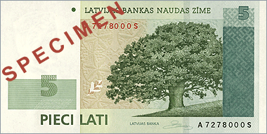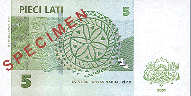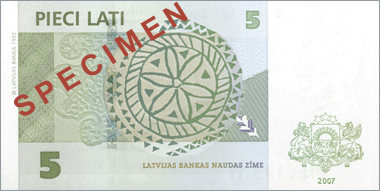 band of the 5-lats banknote issued in 2001, 2006, 2007 and 2009