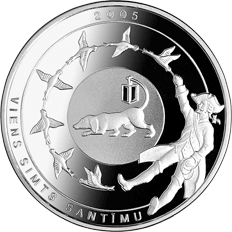 | 2006 | 2006. gadā monētu izstādē Vicenza Numismatica Itālijā 100 santīmu sudraba jubilejas monēta "Barons Minhauzens" nominācijā International Prize Vicenza Numismatica saņēma galveno balvu kā izcilākā monēta. |