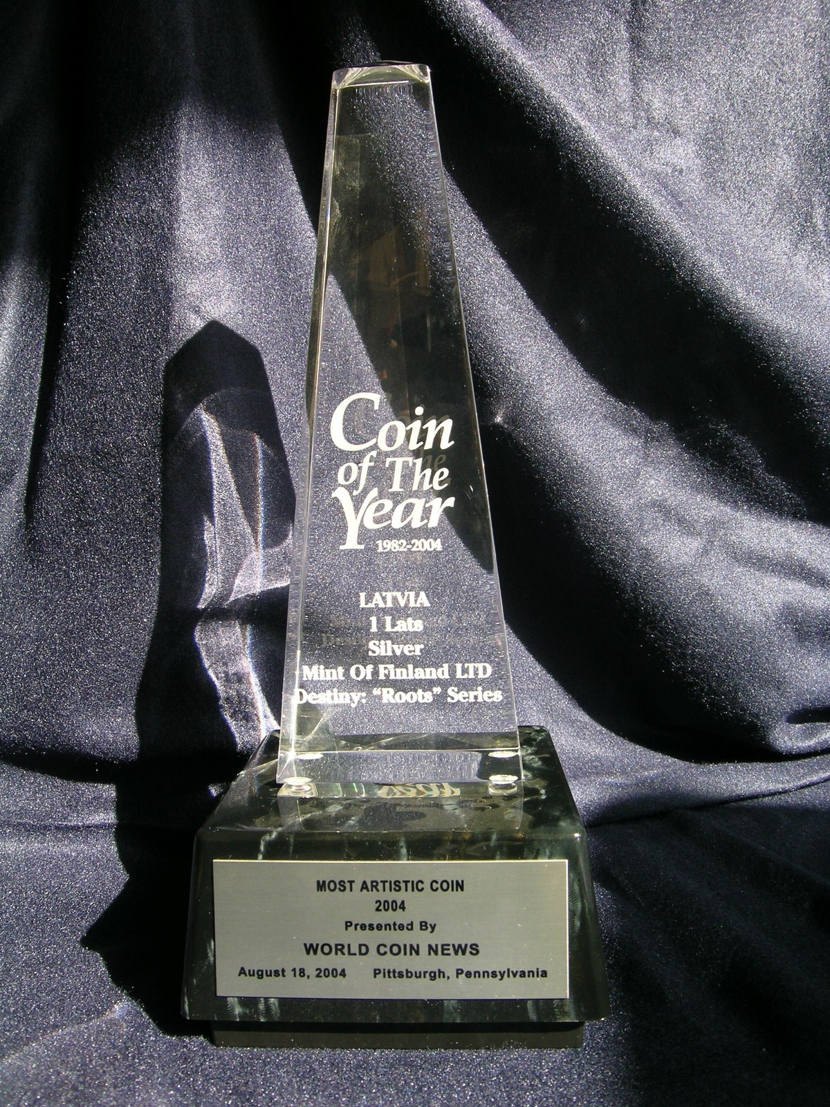 2004. gada augustā Latvijas Bankas sudraba monēta "Liktenis" Pitsburgā (ASV) Amerikas Numismātikas asociācijas konferencē saņēma ASV numismātikas publikāciju izdevniecības Krause Publications un tās izdotā žurnāla World Coin News organizētā konkursa "Gada monēta" balvu nominācijā "Mākslinieciskākā monēta". |